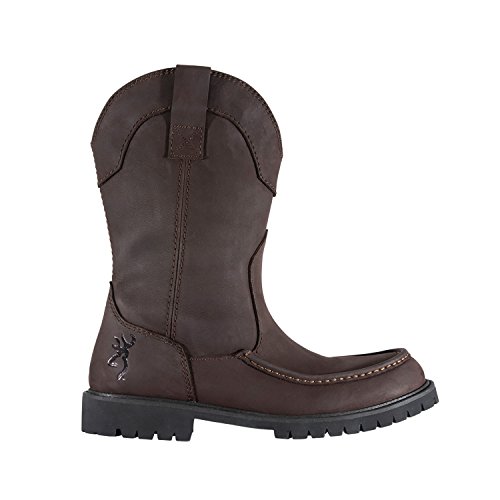 Studio : Signature Products Group Publisher : Signature Products Group Binding : Apparel Product Description An all-leather Wellington-style upland boot that combines the durable comfort of genuine leather with an easy on-and-off design, the Browning Hastings Leather Hunting boot also features a moc-style toe. The leather upper provides simple, classic and reliably comfort, and it features Climate Command waterproof technology that fends off wetness in dew-covered fields or rainy, muddy conditions. The classic rubber sole provides the traction and grip you need across a variety of terrain 0