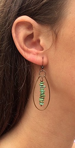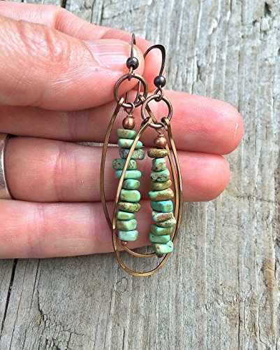 -. Title : Green Turquoise Boho Earrings, Copper Hoop Earrings, Southwestern Jewelry