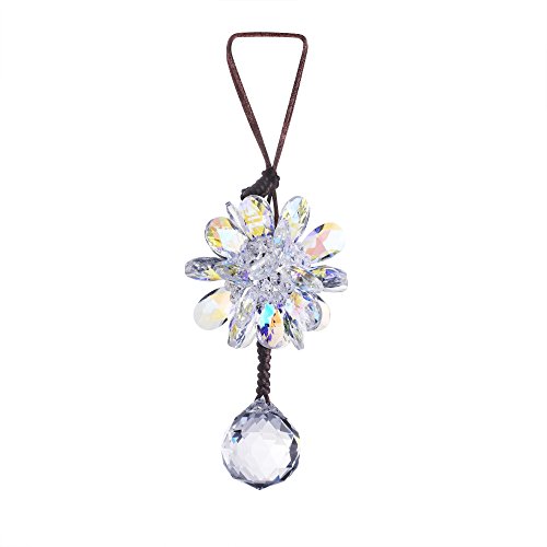 Kloud City Floral Crystal Ball Drop Pendant Car Charm Window Hanging Ornament Suncatcher Car Rear View Mirror Accessories