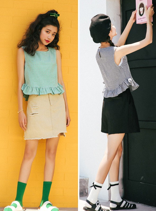 | 商品名 | □ノースリーブショート丈フリル付ギンガムチェック柄ブラウス全2色HMX431#t713t714【予約販売12月下旬より順次発送予定】 【送料無料】ブラウス ギンガムチェック柄 フリル付 ノースリーブ ショート丈 |
