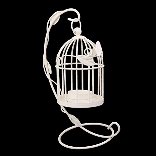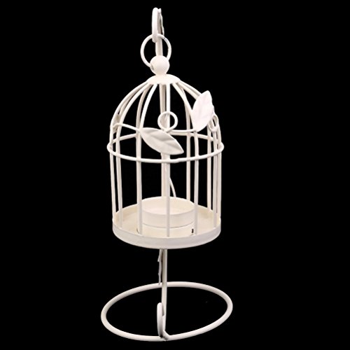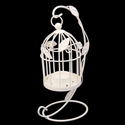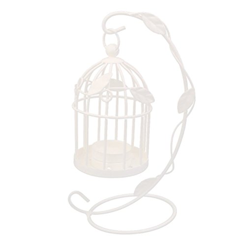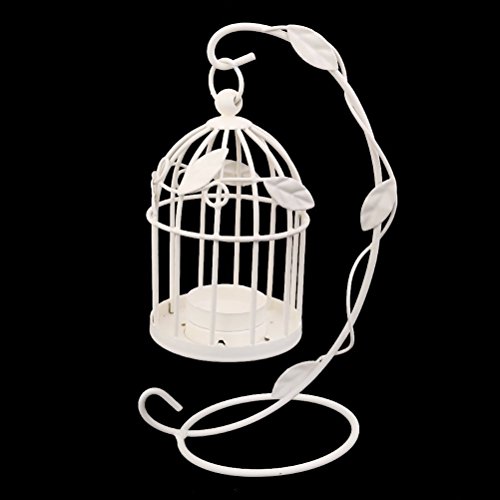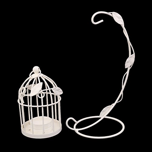 -. Feature : Color: White. Material: Hard and durable wire. / Cage: 13 * 8.5 * 8.5cm Holder: 23 * 16cm. / Cage style candlestick with hanging holder. / Add charm and beauty to your living space, marriage, party, etc. / Great for both indoor or outdoor use.