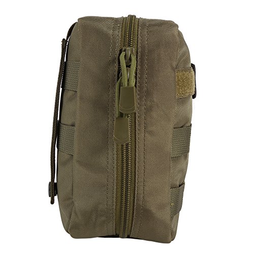 -. Feature : Made of high quality 600D Nylon durable anti-scraped and wear-resisting, all seams are securely stitched. / Molle design, can be loaded into tactical vest, belt, chest rigs, girdle and other equipment . / 2 way zipper with silent cord pulls can be completely open and won't snap shut, accessing to the first aid component at the first time. / Elastic straps inside to store your small first aid supplies. / Perfect for outdoor & family first aid emergency uses,It also can be used as a gadget pouch or a small tool kit.