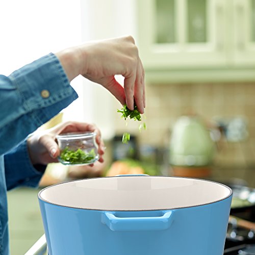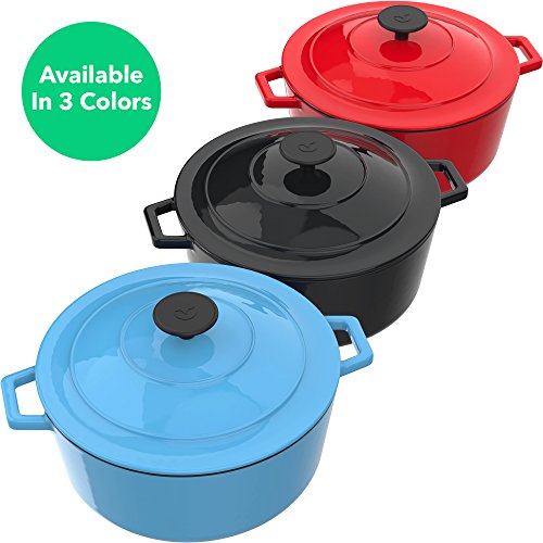 Studio : Vremi Publisher : Vremi Product Description Throw your pans in the air, and treat this Vremi Enameled Cast Iron Dutch Oven like you really care! Exclusively designed for dishes requiring long, slow cooking, its generous six quart capacity enables you to easily braise meat and prepare vegetable soups, stews, chili and a wide variety of delicious one-pot meals. With ergonomic handles and an advanced interior enamel that resists chipping, cleans easily and also doubles as an attractive serving dish, this oven blends the best of the past with the latest innovations in comfort and functionality. Create culinary delights with this essential dutch oven by your side. Available in three fun color choices. Product Details - Dutch Oven size: 13.2 x 10.6 x 8.25 inches including lid (33.5 x 27 x 21 cm)
