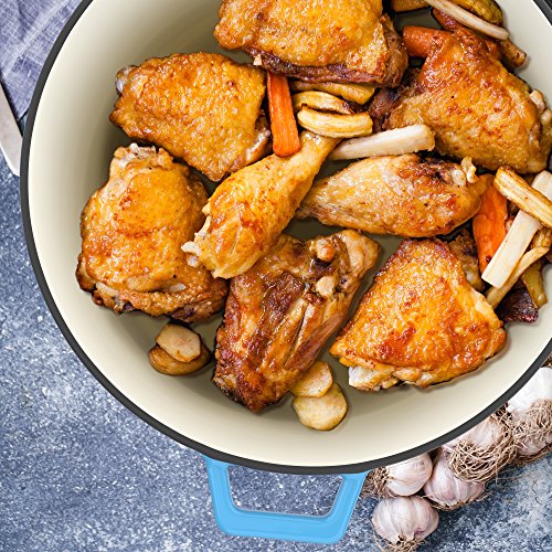 - Materials: Cast iron lid and base; 2 layer food-grade enamel coating exterior