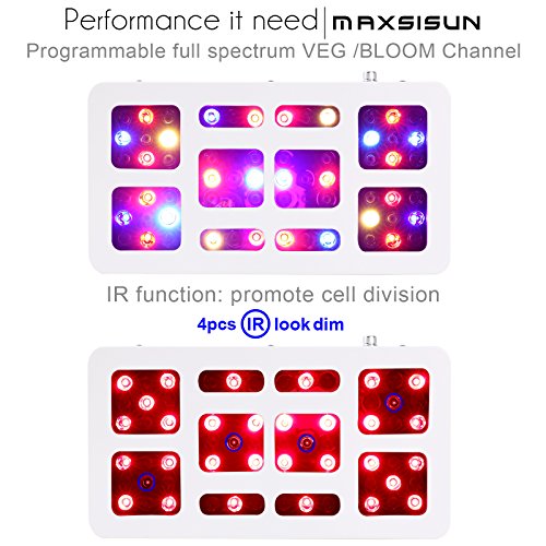 -. Feature : MAXSISUN LED Grow Light, 12-band Dimmable/Programmable Full Spectrum for Indoor Hydroponics Plants Veg and Flowering