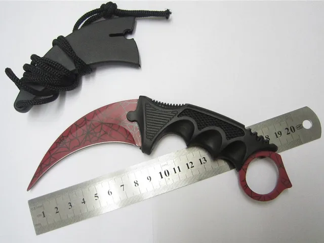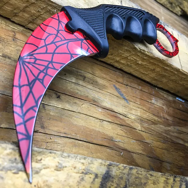 균열 패턴 레드 스파이더 구부러진 전술 전투 KARAMBIT 목 나이프 야외 생존 사냥 보위 고정 블레이드