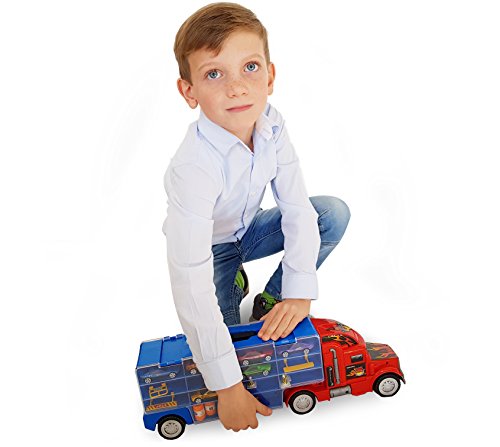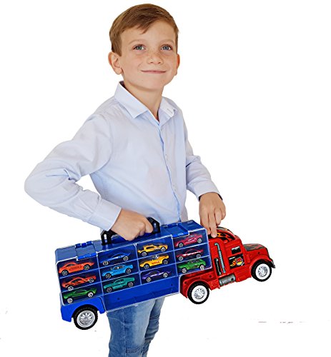 This big toy truck has a scale of 1:28 measures over 50cm long and can store up to 28 cars or vehicles.