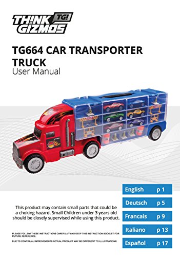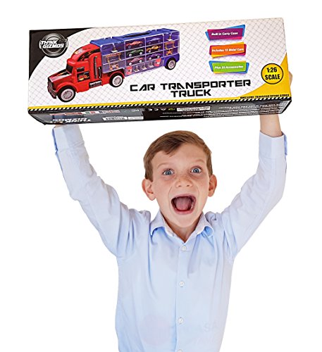 The super Car and Vehicle Transport Truck from ThinkGizmos is the ideal gift for anyone who loves toy cars or vehicles. Part of the Awesome Transport Series from ThinkGizmos this comes in a quality giftbox with everything needed to enjoy the toy included. The Truck is 1:28 scale and measures at over 50cm long with 12 cars included and space to store a total of 28 matchbox sized cars (not including accessories) the Car transport truck is not only a cool toy it is also an awesome storage solution. Featuring an included carry handle on the top the Car Transport Truck will be one of the toys the recipient won't want to put down. The TG664 Car Transporter Truck is recommended for children aged 3+ and is a 'ThinkGizmos' branded product.Feature