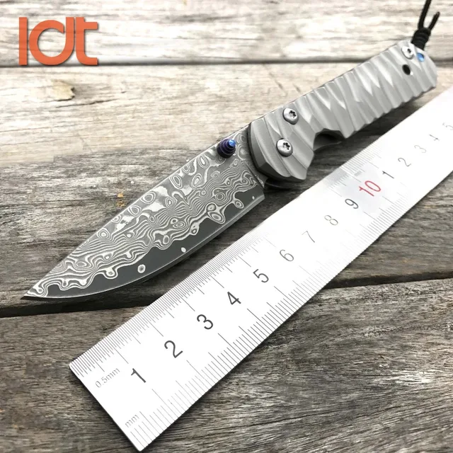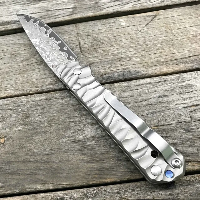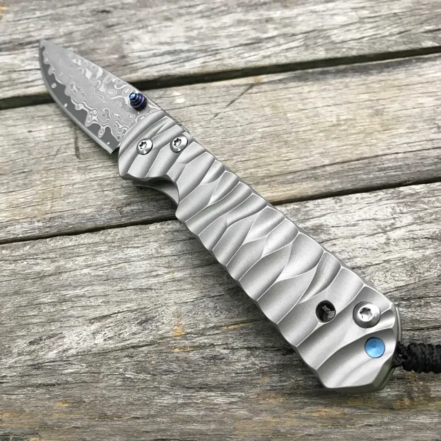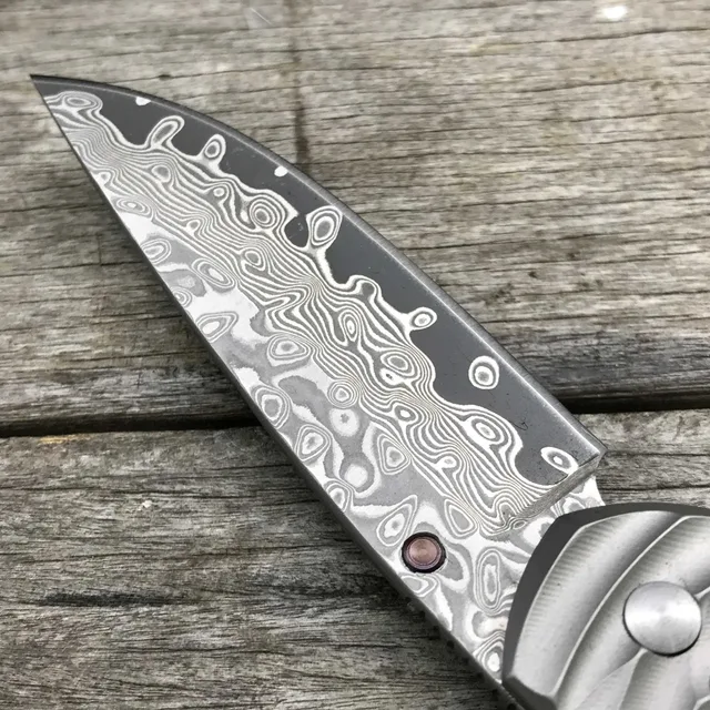 | [해외] LDT Sebenza 접는 블레이드 나이프 다마스커스 블레이드 물결 모양의 티타늄 전술 야외 도구 캠핑 생존 사냥 OEM 칼 |