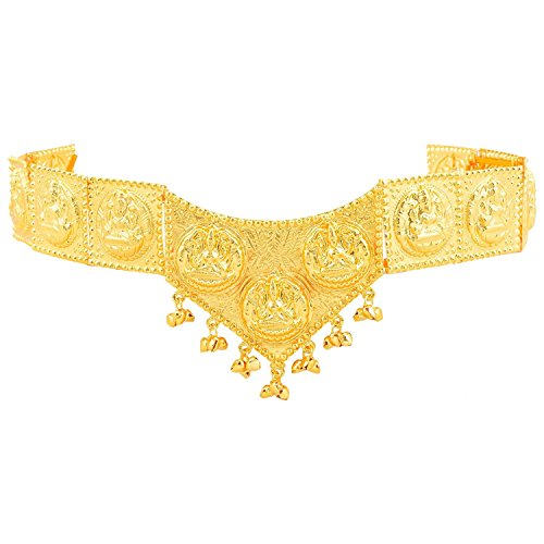 Studio : Khushipurchase Publisher : Khushipurchase Binding : Jewelry Product Description ShruthiLaya's Beautiful V shaped Gold color plated Lakshmi Belt jewelry can be used for Bharatanatyam and Kuchipudi dance performances., Length of the belt is 20 in,Specially for south Indian marriage for bride.this jewelry is partially hand made.,This is the imitation form of the traditional Indian jewelry also called as Dance jewelry used for Indian classical dances from the beginning.,We maintain best quality and whole sale price we bring you this exquisite piece of jewelry which suits your elegant image Suites for All age group above 8. 0