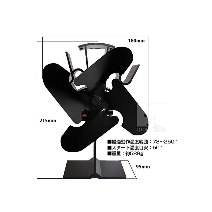 원본상품명: エコストブファン 4ブレド (ブラック) 石油ストブや薪ストブの上に置いて空を循環 エコファン 省エネ