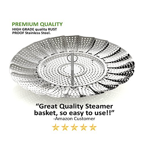 ??? SALE - ENDS SOON - SCROLL DOWN FOR FURTHER DISCOUNTS ??? SUPERIOR BUNDLE - Your #1 Best Seller 5? Rated Pro Amazon Bundle comes with a PREMIUM STAINLESS STEEL Vegetable Steamer Basket LARGE, a FREE ULTRA SHARP Julienne Veggie Peeler Slicer (worth $9.95) and a FREE downloadable Cookbook (sent by email) full of healthy, tasty recipes. (Prime one day overnight shipping eligible)
