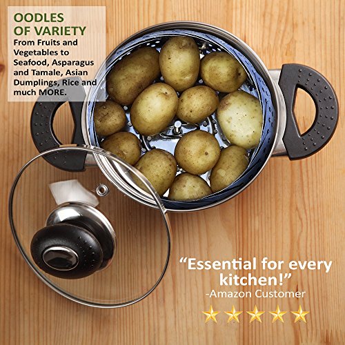 OODLES OF VARIETY - From Fruits and Vegtable to Seafood, Asparagus and Tamales, Asian Dumplings, Rice and much MORE. Ideal for Low Carb, Raw Food, Gluten-Free, Paleo and Dukan DIETS or anyone looking to eat HEALTHIER. The PERFECT companion to Great Food Fast, Weight Watchers, South Beach Diet and Atkins Diet. Find GREAT Recipes in our Steaming eBook. An AWESOME GIFT for your FAMILY & FRIENDS especially FOODIES. Buy as a FRUIT BASKET or STRAINER; Drain Stir Fry Meats and Hot Water from Spaghetti.