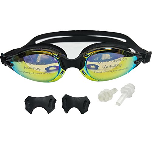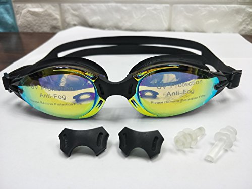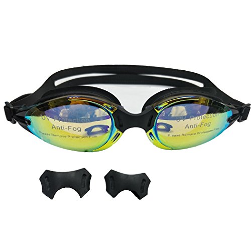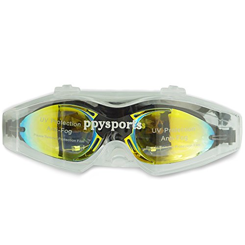 Ppysports Adult Swimming Goggles with Anti Fog, UV Protection, Interchangeable Nose Bridge, Clear Earplug - Suitable for Man and Women