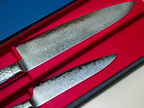 원본상품명: ステン&ニッケル 63層 ダマスカス 一?型 ペティナイフ 120mm & 牛刀 180mm 2丁 セット 組