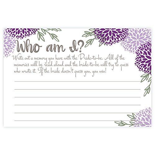 Purple Floral Who Am I Bridal Shower Game Cards (50 Count)