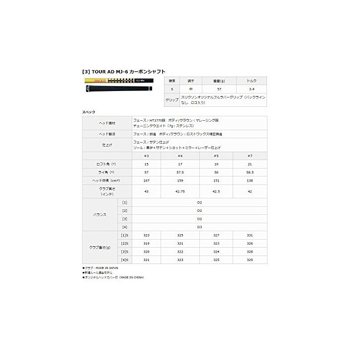 원본상품명: DUNLOP(ダンロップ) SRIXON Z F45 フェアウェイウッド TOUR AD MJ-6 カ?ボンシャフト ロフト角:15度 番手:3W フレックス:S
