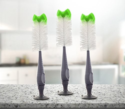 Bottle Brush With Soft Bristles - 3 PACK - 3 Premium Value Bottle Brushes - Sports/Beer/Water/Glass Bottle Brush - Includes Nipple Brush Feature