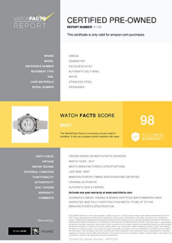 -. Feature : Omega Seamaster 232.33.38.20.04.001 with white dial / Authenticated by WatchFacts. Grade Rating: 98 / Condition: Mint / Comes with original box and manufacturer's papers offered with this watch / Automatic-self-wind movement / Watch year: 2017