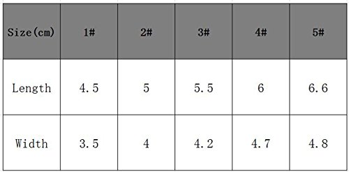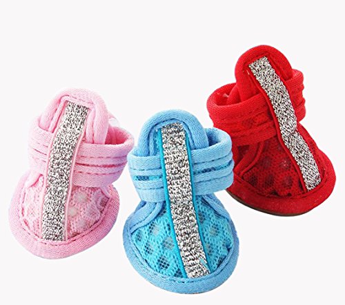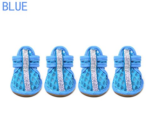 -. Feature : Lightweight materials, Soft, Comfortable, Novel design high quality and comfortable to wear for your pet dog; let your pet dog keep cool in hot summer; / Size: 1#: length: 4.5cm, wide: 3.5cm,2#: length: 5cm, wide: 4cm,3#: length: 5.5 cm, wide: 4.2cm,4#: length: 6cm, wide: 4.7cm,5#: length: 6.6cm, wide: 4.8cm; / Per fit for everyday wear, holiday, parties, and photos, keep your dog stylish and cute; / In hot summer, the shoes can keep your pet's feet from hurting by boiling floor; / With the shoes on, you will never worry about your pet's feet in hot summer.