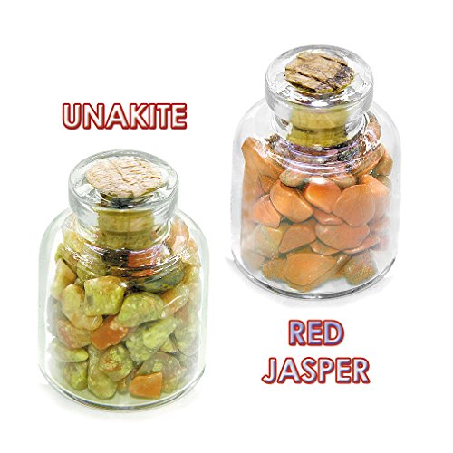 Root Chakra Magic Positive Healing Inspirational Amulets Glass Stones Red Jasper Unakite Bottles Set