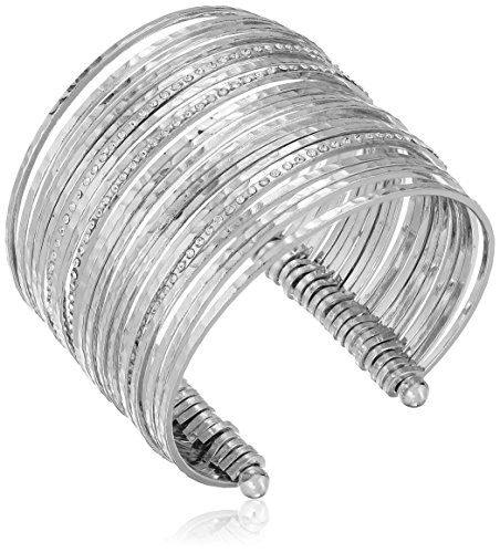 -. Title : Jessica Simpson Hammered Stacked Rhodium Cuff Bracelet