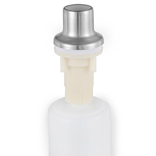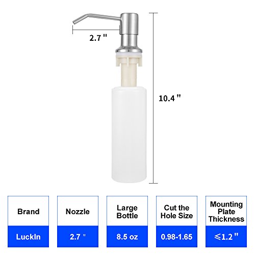 Large Bottle: Foaming soap dispenser with 8.5 oz white container can be pumped easily into the sink. Maximum thickness of sink countertop is 1.2 inch. Please check your sink thickness before purchasing this elegant soap dispenser.