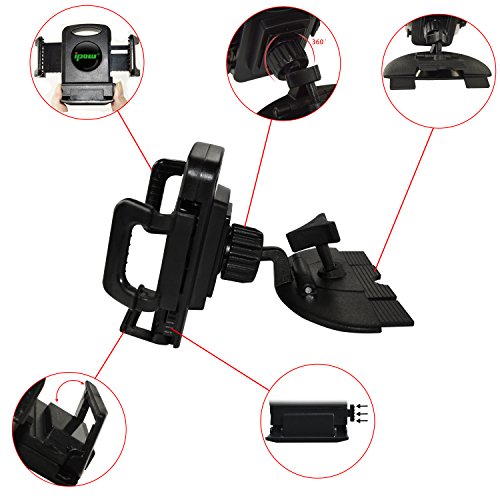 Universal car mount is well designed to fit into probably any CD slot regardless of width or thickness. Strong and sturdy grip thanks to rubber-reinforced, thin metal insertion blade.Super-tight but simple blade system involves just a thumbscrew and tightening wheel;and does not interfere with the operation of the CD Unit;