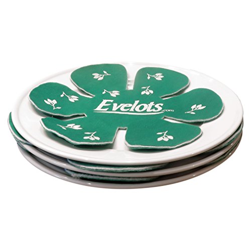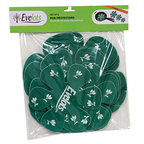 Help extend the life of your favorite pots, pans, and dishes. Flowered, green petal-shaped discs nest between pots, pans, and dishes protecting non-stick finishes. To clean, simply hand wash with warm water and mild detergent and let air dry. Made of polypropylene and non-woven material. Note: NOT intended to be used as a pot holder against high heat. Set includes two each of the following sizes: 11.75"D, 10"D and 7.9"D. Pots, pans, and dishes are not included. *Evelots is a brand of Green Mountain Imports, LLC and is exclusively distributed by Green Mountain Imports.*Evelots has more than 500 products to offer. Please don't forget to visit our Amazon store.Feature