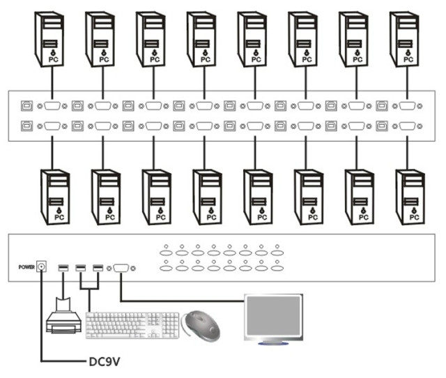 Thank you for purchasing the 16 intelligent KVM switch. The KVM switch with simple operation, strong compatibility can save time and money space equipment and functions for your. It can control 16 computer with a keyboard mouse monitor. It can be used to keyboard and mouse simulation start complete computers at the same time.