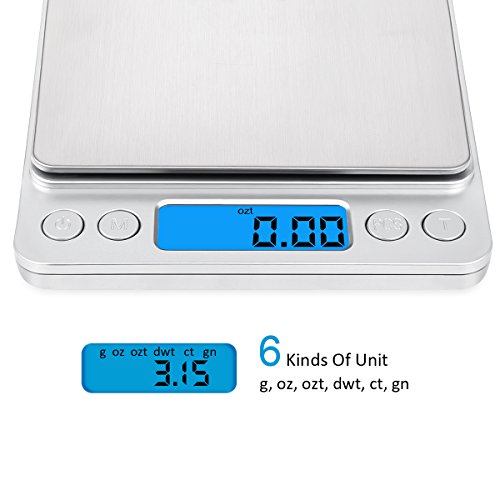 - Multi-Functions: Built with a clear blue back-lit LCD screen, the digital mini scale can converts measurement units in seconds between g, oz, ozt, dwt, ct, and gn. Comes with two trays (13cm, 10cm), which can be used as protector or scale tray. Meet your demand of measuring different things.