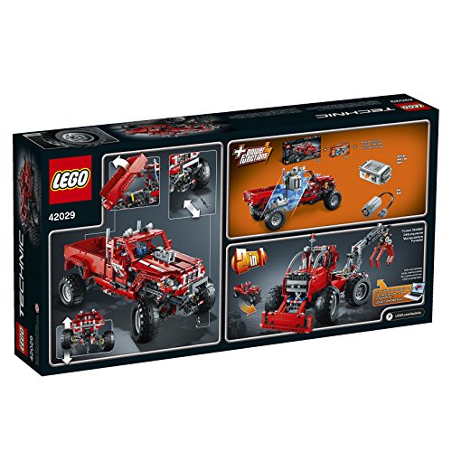 -. Feature : 2-in-1 model: rebuilds into a Forest Skidder / Features huge wheels, fully independent suspension, tipping bed, sturdy grill guard with working winch, opening doors and front steering / Check out the powerful V-6 engine! Open up the hinged doors! Tip the bed and deliver the load! / Upgrade with the 8293 Power Functions set (not included) for working LED headlights and a motorized winch and bed / Customized Pick Up Truck measures over 7" high, 16" long and 7" wide ; Forest Skidder measures over 6" high, 18" long and 6" wide