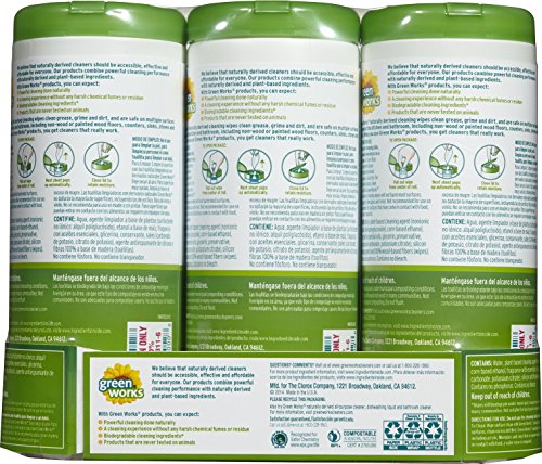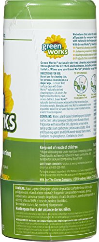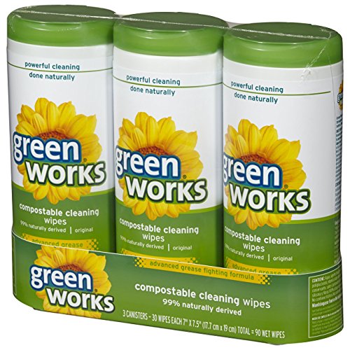 Green Works Compostable Cleaning Wipes make it easy to wipe away messes. These cleaning wipes feature an advanced grease fighting formula, a powerful naturally derived cleaner in a fresh scent. The 99% naturally derived plant-based ingredients make these wet wipes compostable. With no harsh chemical residue, they are safe on most non-wood surfaces. Stock up with this value-pack of 3 and use throughout your home. Try the entire line of Green Works naturally derived cleaning products.
