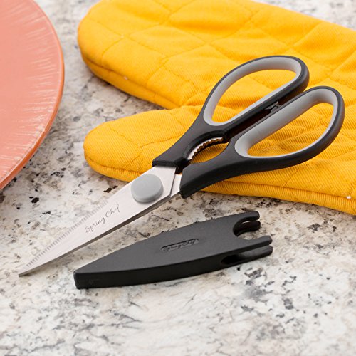 THE SWISS ARMY KNIFE FOR THE KITCHEN - Multi-purpose scissors that can cut chicken/poultry, meat, vegetables, fresh and dried fruits, herbs, chocolate, and even string, packaging and flower stems. Built-in bottle opener is convenient and can also be used to crack open nuts.