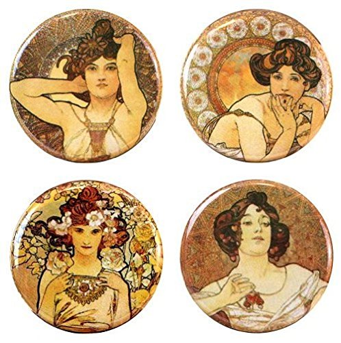 Henry the Buttonsmith Mucha Refrigerator Gemstones Magnet Set