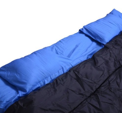 Studio : HomeProductWarehouse Publisher : HomeProductWarehouse Product Description Specifications Shell Material: 210 T polyester taffeta ripstop waterproof Filling Material: 300G /M2 Hollow Cotton Lining Material:Blue Weaving cotton Pillow Material: Blue Weaving cotton Black compression stuff sack: 210T Fabric cloth Pillow Dimension:15.7" x 11.8" Total Weight: 2900g Total Size: 86" x 60" Package Include 1 x Double Sleeping Bag 2 x Pillows 1 x Carrying sack 0