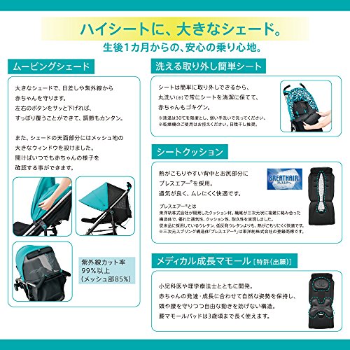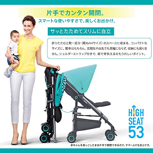 ●製品特徴:人気のハイシートバギー「STICK」がママの理想をもとにフルモデルチェンジ。生後1カ月から使えるようになり、赤ちゃんを抱っこしたまま片手でカンタン開閉も可能に。フルカバーできる大きなシェードも搭載し、赤ちゃんの快適さはもちろん、ママの使い勝手もアップしました。●開閉サイズ:W47.2×D81.5×H106.5cm、収納時:W36×D29×H1055cm●重量:5.7kg●対象年齢:生後1~36ヶ月●制限体重:15kg以下●リクライニングの角度:120~170度Feature