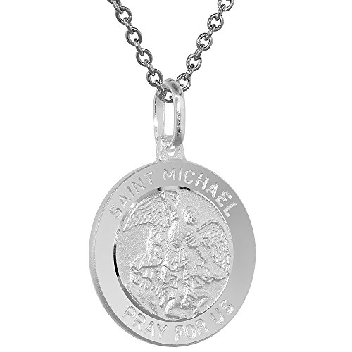 -. Title : Sterling Silver St Michael Medal Necklace 3/4 inch Round Italy