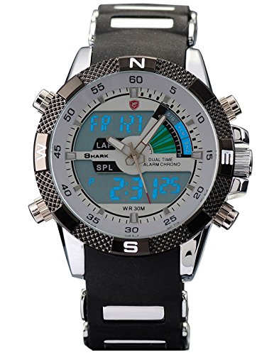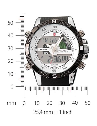 -. Title : SHARK Men's Sport Wrist Watch Dual Time/ LCD/ Alarm/ Chronograph White Dial SH041