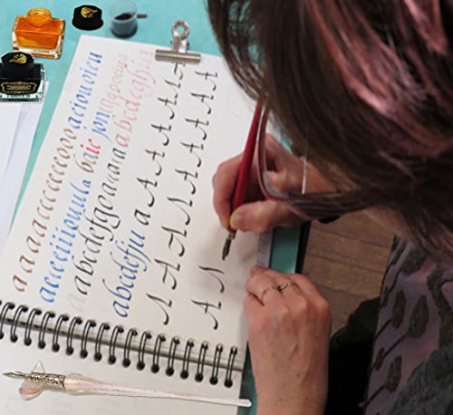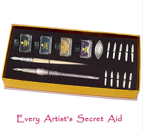- EVERYTHING YOU NEED to get started in the art of calligraphy! An exquisite set with 2 pens, glass pen rest, 4 inks including black, gold, shimmering purple and metallic turquoise, and 10 nibs – all presented inside a luxurious pink and gold box. The #1 set for beginners and those who love the craft of writing – especially women. Also included is our manual - learn how to get the most from your calligraphy set!