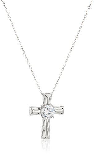 -. Title : Rhodium Plated Sterling Silver Round White Cubic Zirconia 6mm Diamond Cut Cross Pendant Necklace, 18"