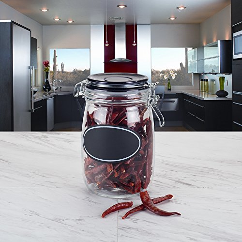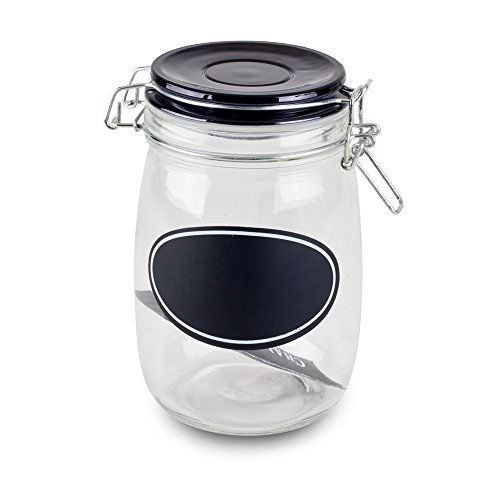 Housewares International 33902 Metallic Jar Blue Harbor Clip Lid and Chalkboard Label, 33 oz, Black