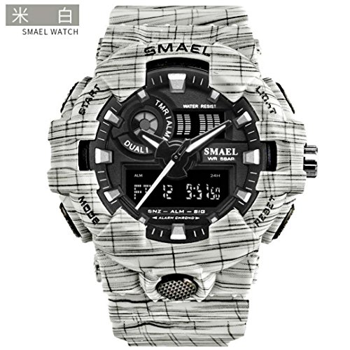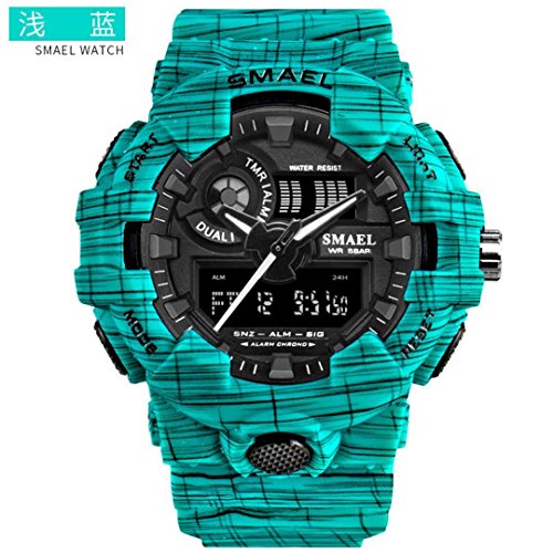 30M water resistant:please do not press any buttons under water and avoid using it in extreme hot or cold temperature Functions: Glow in the dark; Calendar Analog time display; Day of week Special Gift: This beautiful watch comes complete in the gift box,making them a gift that will stand the test of time. Case Material: Alloy, Band Material: Stainless Steel, Movement: QuartzFeature