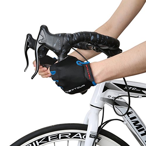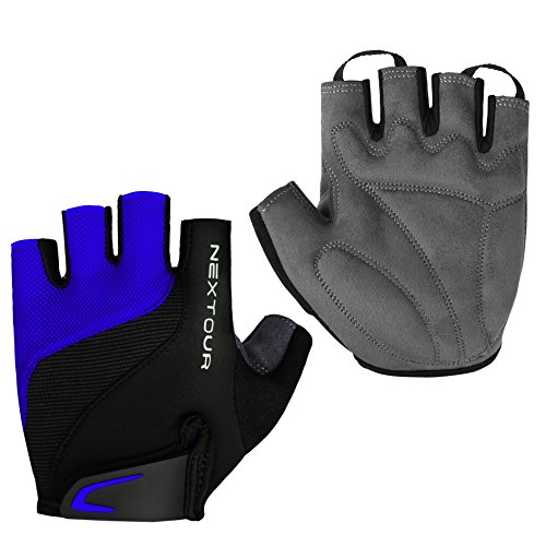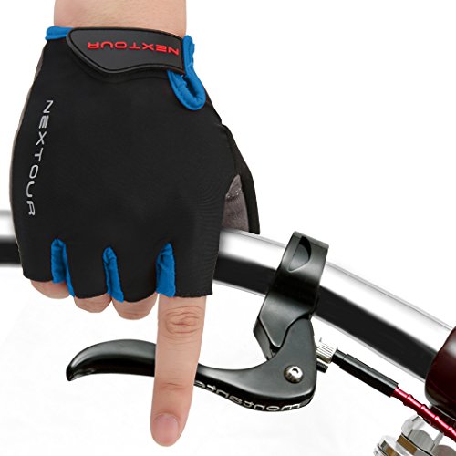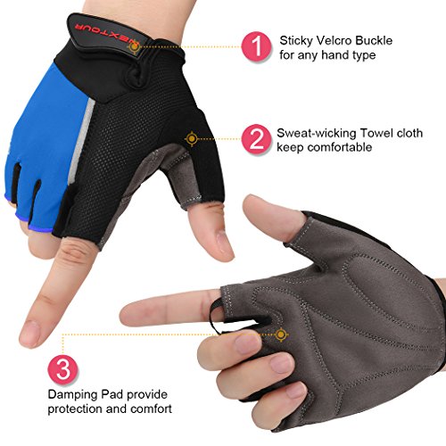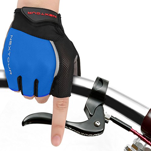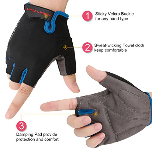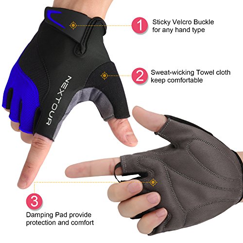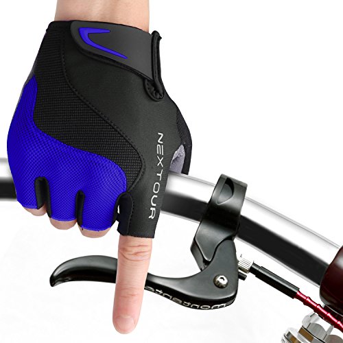 Cycling Gloves Mountain Bike Gloves Bicycle Half Finger Road Riding Gloves with Shock-absorbing Pad Biking Gloves for Men and Women, Medium, 07-Blue
