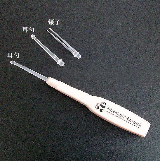 First rotation with shell, so that the two arrows are pointing, dug Ershao spoon unit will be able to emit light, easy to observe the inner ear;