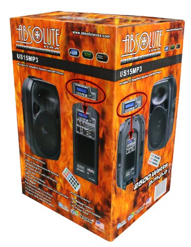-. Binding : Electronics -. Brand : Absolute -. EAN : 0847169012044 -. Feature : 2 Way 15-Inch Portable Active PA Speaker 2500 Watts P.M.P.O / MP3 Player Built in LCD Display / SD Card Slot and USB Connection Ready / Equalizer (EQ) Bass and Treble Level Controller / 1-Inch Titanium Dome Horn Driver -. Label : Absolute USA Inc. -. Manufacturer : Absolute USA Inc. -. MediaType : MP3 -. Model : US15MP3 -. MPN : US15MP3 -. PackageQuantity : 1 -. PartNumber : US15MP3 -. ProductGroup : Speakers -. ProductTypeName : SPEAKERS -. Publisher : Absolute USA Inc. -. Studio : Absolute USA Inc. -. Title : Absolute USA PRO US15MP3 Portable 15-Inch Amplified Speaker with MP3/SD/USB Player Built-In LCD Display and Remote Control -. UPC : 847169012044 -. Warranty : 2 year