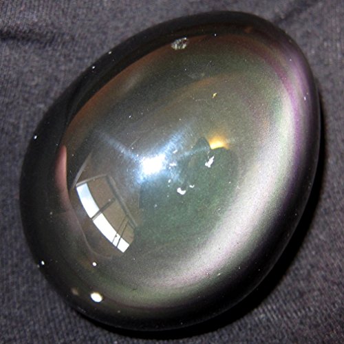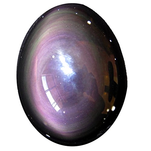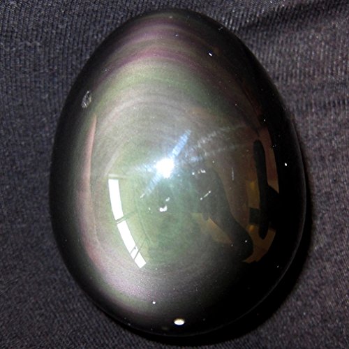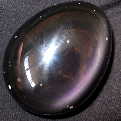 Your attractive egg is made from rainbow obsidian gemstone. Obsidian is formed from volcanic activity. It appears black in normal lighting, but under intense light you will see various rainbow patterns. Super shiny and polished, it has some lines, rings, and white pores along the surface that are characteristic of genuine obsidian. Receive this exact stone pictured when you order from Satin Crystals.