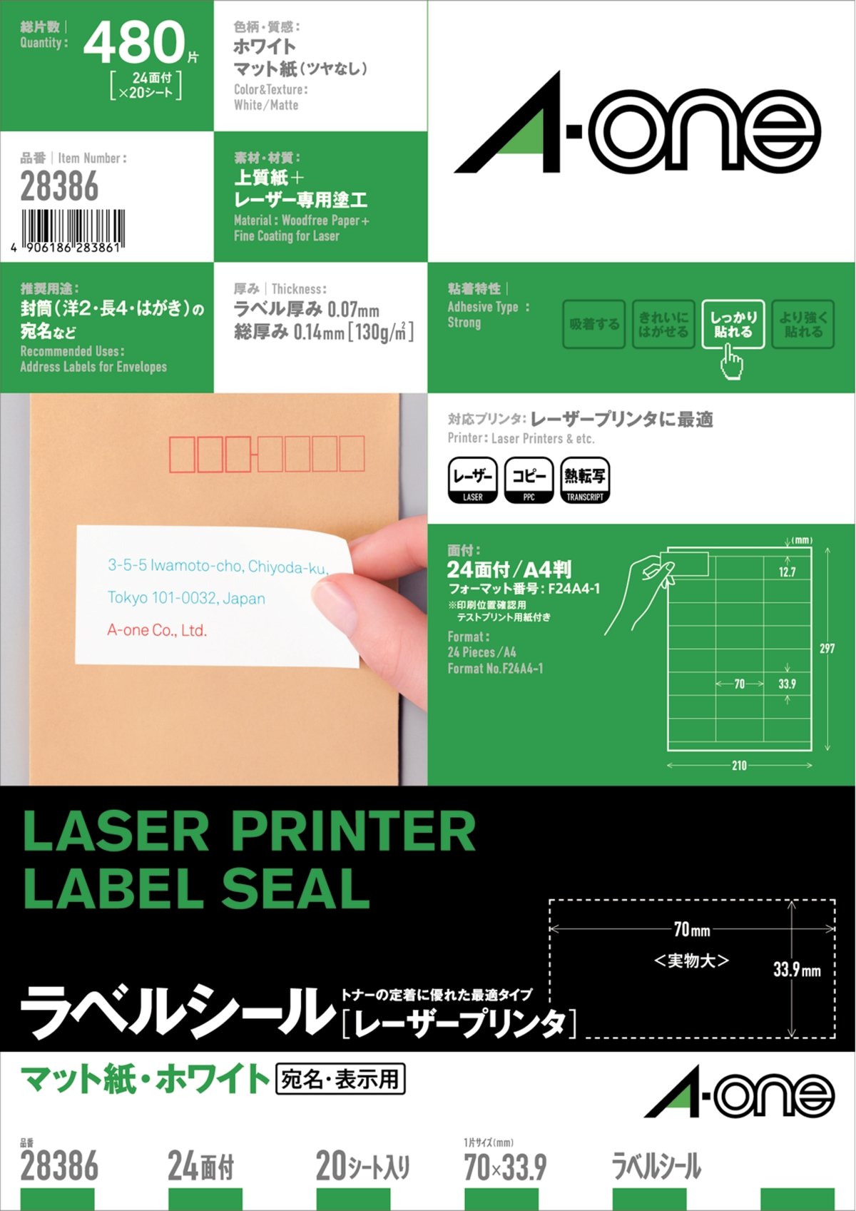 -One (A-one) label seal [Laser Printers Matte Paper White A4 24 20 sheet margin with upper and lower faces (480 pieces) 28 386 (japan import)
