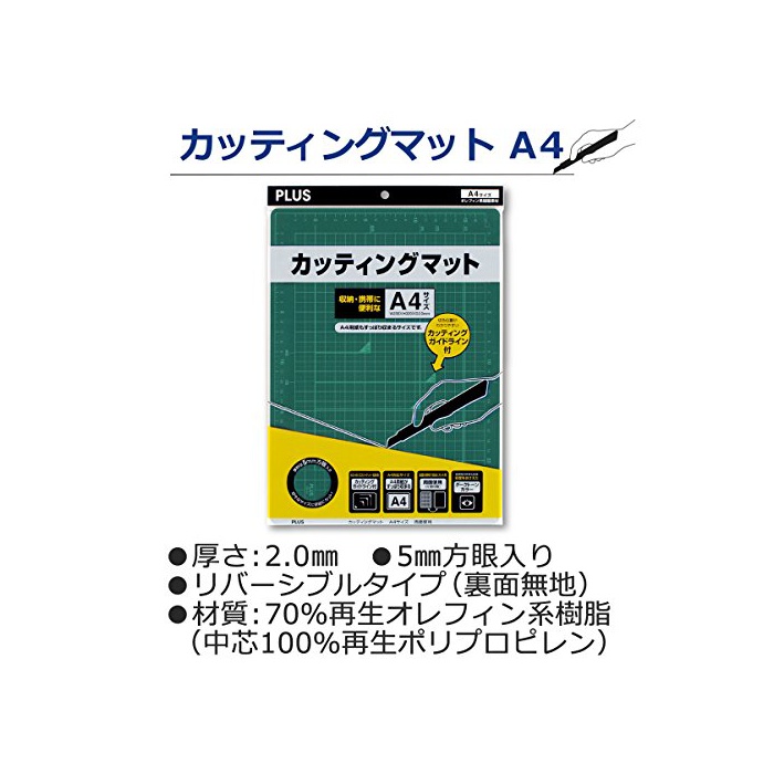 원본상품명:プラス カッタマット 面 A4 230×320mm グリン 48-573