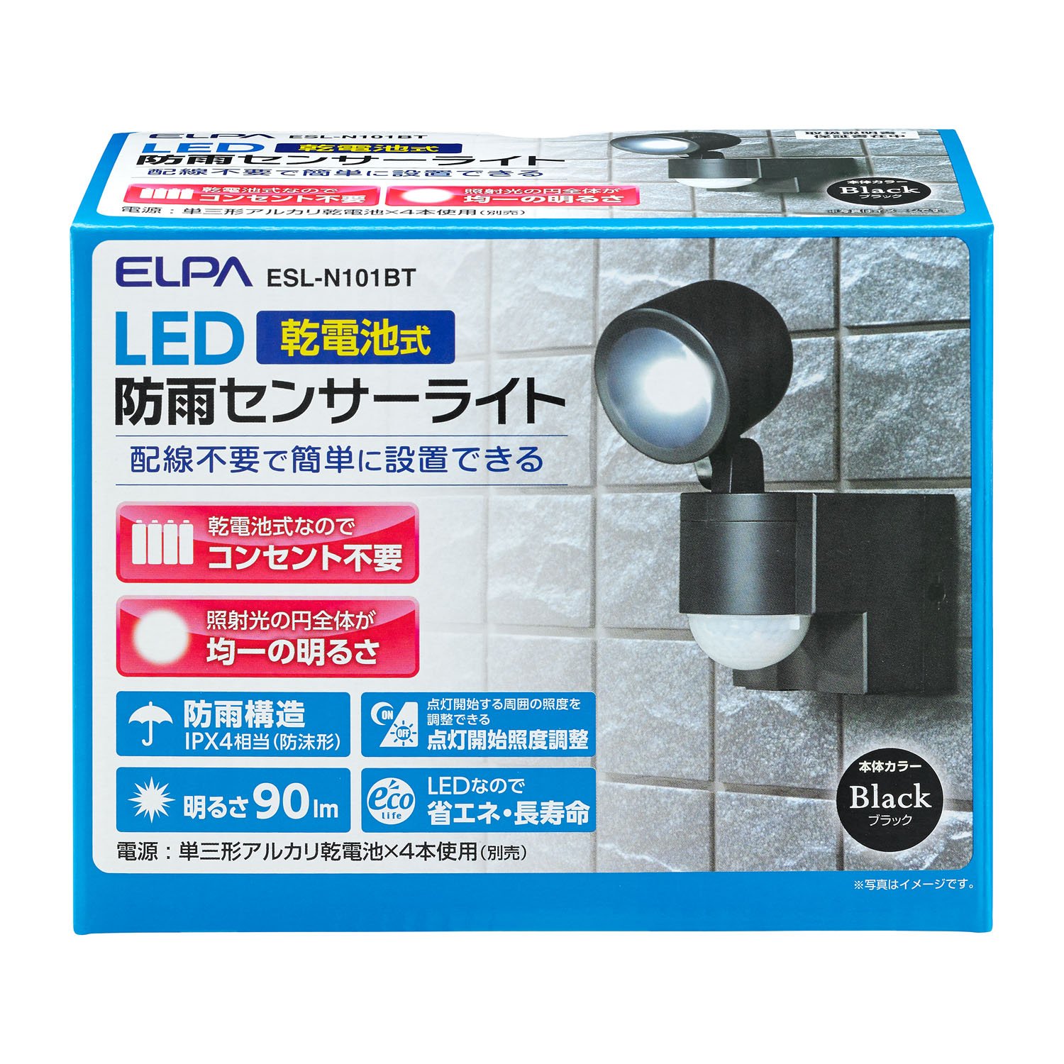 ■ Detection method: Infrared passive type ■ Power supply: DC 6V (4 AA alkaline batteries X used) ※ Batteries sold separately ■ Battery life: About 6 months (when lighted 10 times a day) * Battery life is